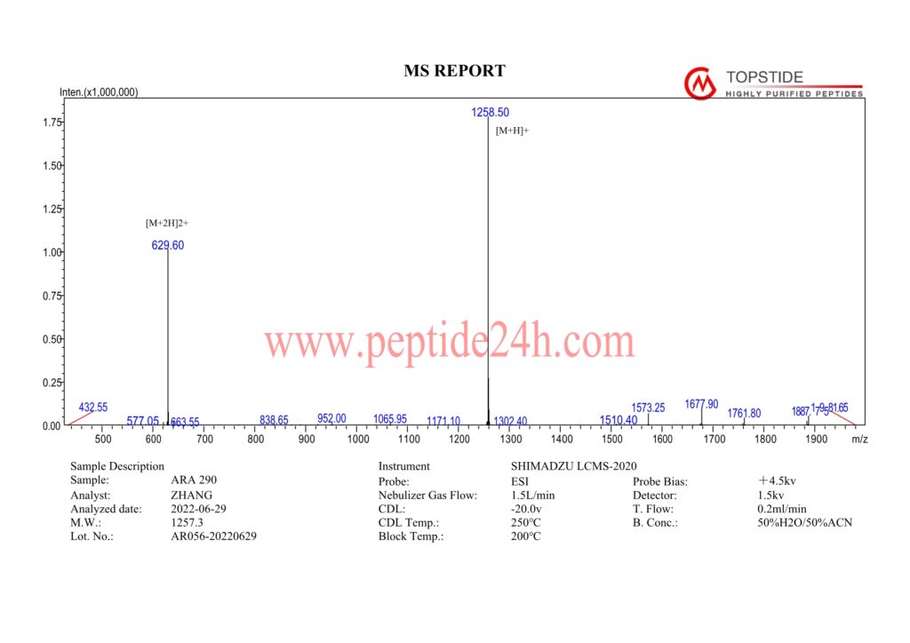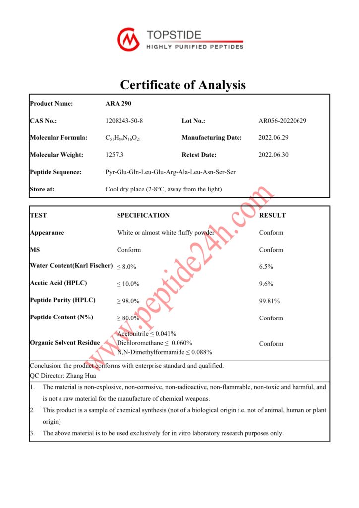 ARA-290 is a small peptide derived from the helix beta domain of erythropoietin (EPO).EPO haslong been know to exhibit actions beyond the stimulation of red blood cell production in bonemarrow.The glycoprotein, which is made in the kidney, has been found to stimulate blood vesselgrowth, promote cell survival, alter blood pressure, and produce neuroprotective effects in diabeticneuropathy.ARA-290 offers the neuroprotective and pain relieving effects of EPO without stimulating red blood ell production.ARA-290 has completed phase ll trials and is in preparation to enter phase ll trials for a variety of applications in diabetes and the autoimmunesarcoidosis. Right now, the peptide is of active interest for its ability to control neuropathic pain,but it is also under investigation as a potential stimulator of wound repair in chronic diabetes, asan immune modulatory drug, and as a potential treatment for systemic lupus erythematosus(lupus or SLE).