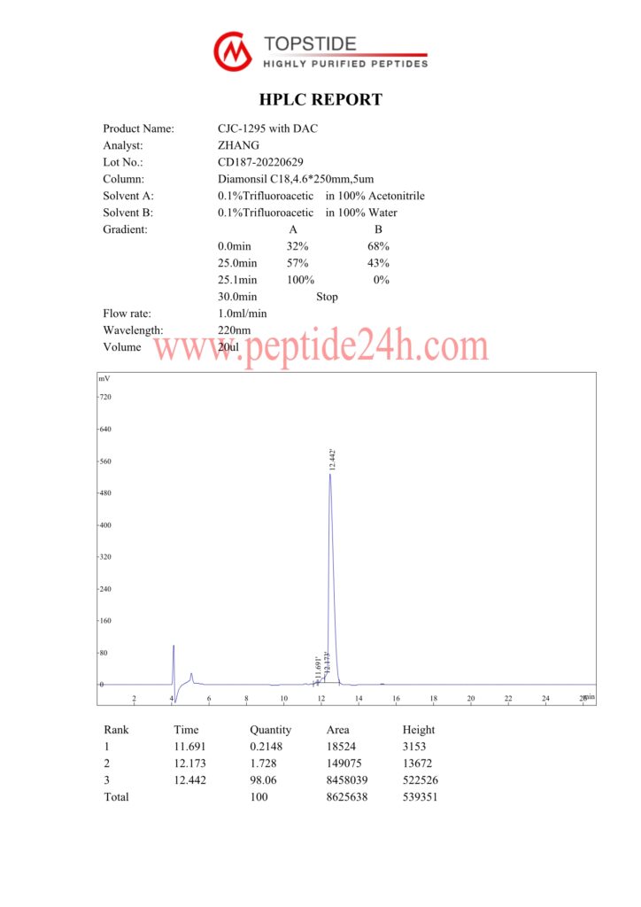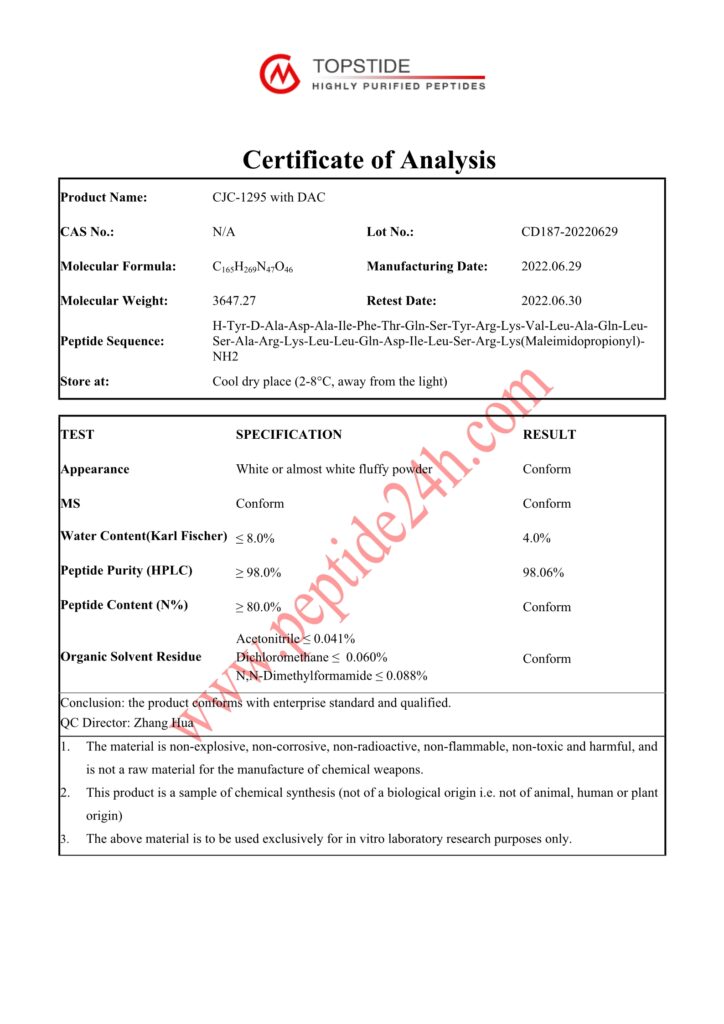 circulates in the blood stream.By allowing peptides to bind to the common blood protein albumin,DAC helps to ensure that the half-life of CJC-1295 is much longer than similar molecules like GRF(1-29).