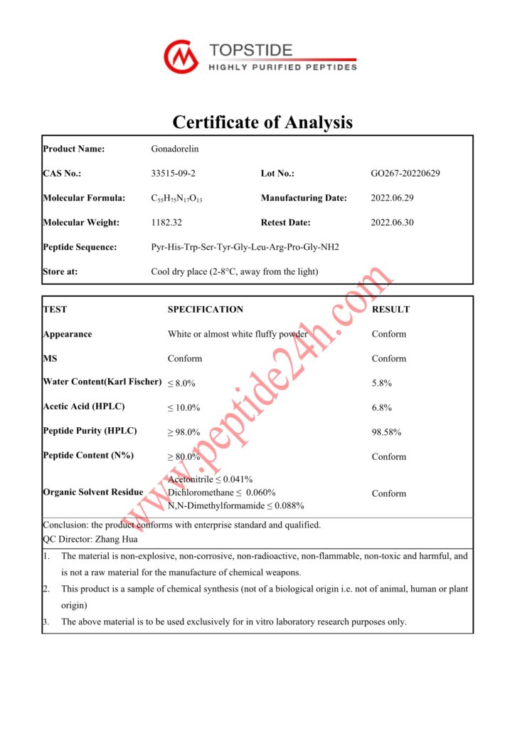 Peptide Sequence: Pyr-His-Trp-Ser-Tyr-Gly-Leu-Arg-Pro-Gly-NH2