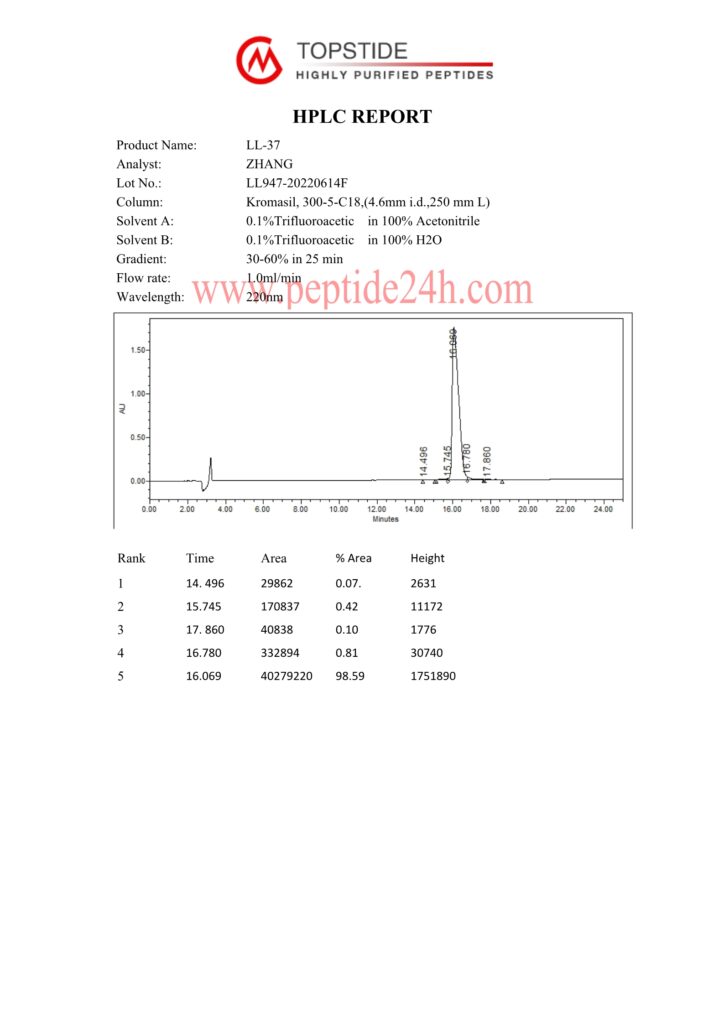 Name: LL-37 humam; LL-37; CAP-18; Cathelicidin; ropocamptide