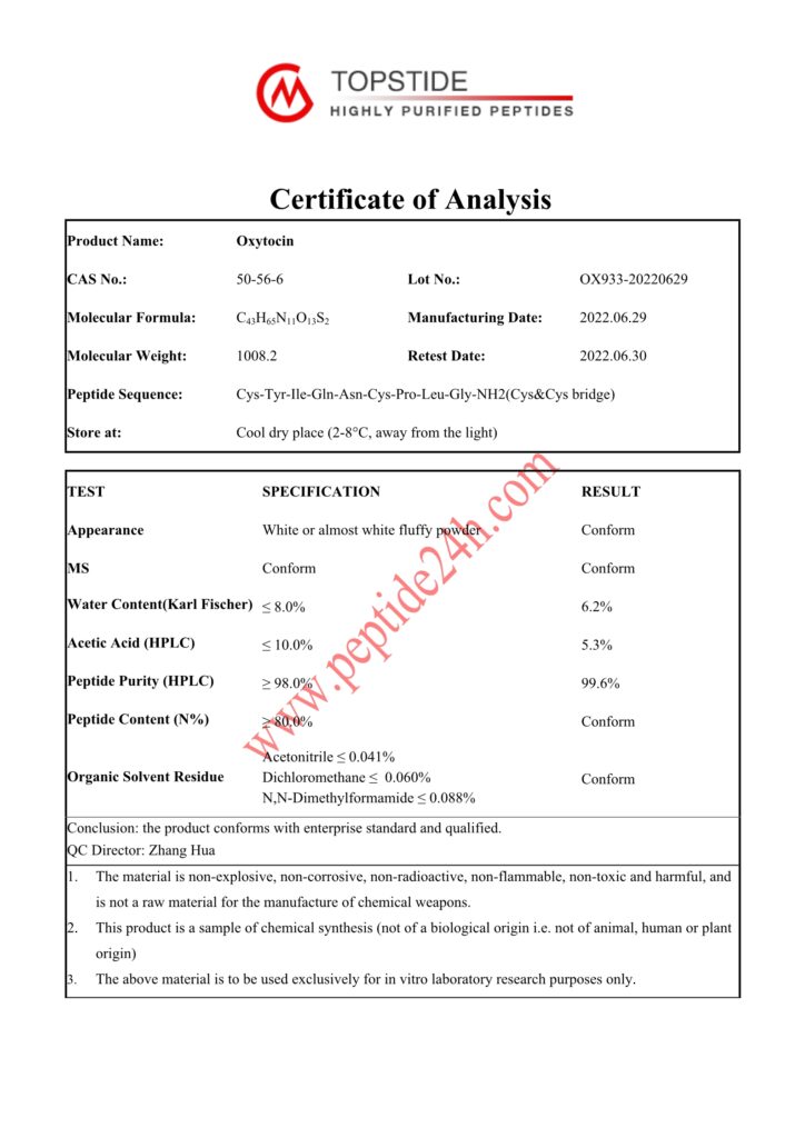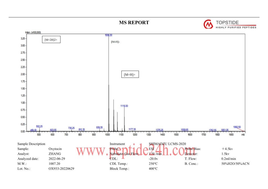 Peptide Sequence: Cys-Tyr-Ile-Gln-Asn-Cys-Pro-Leu-Gly-NH2(Cys&Cys bridge)