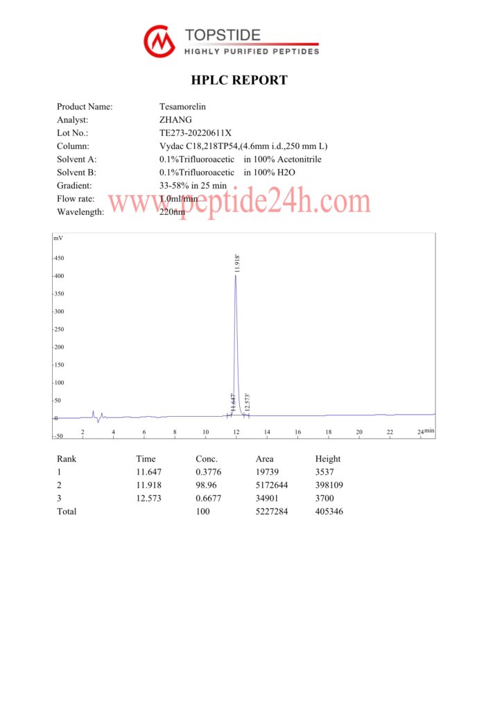 Tesamorelin is a synthetic peptide consisting of all 44 amino acids of human GHRH with the addition of a trans-3-hexenoic acid group
